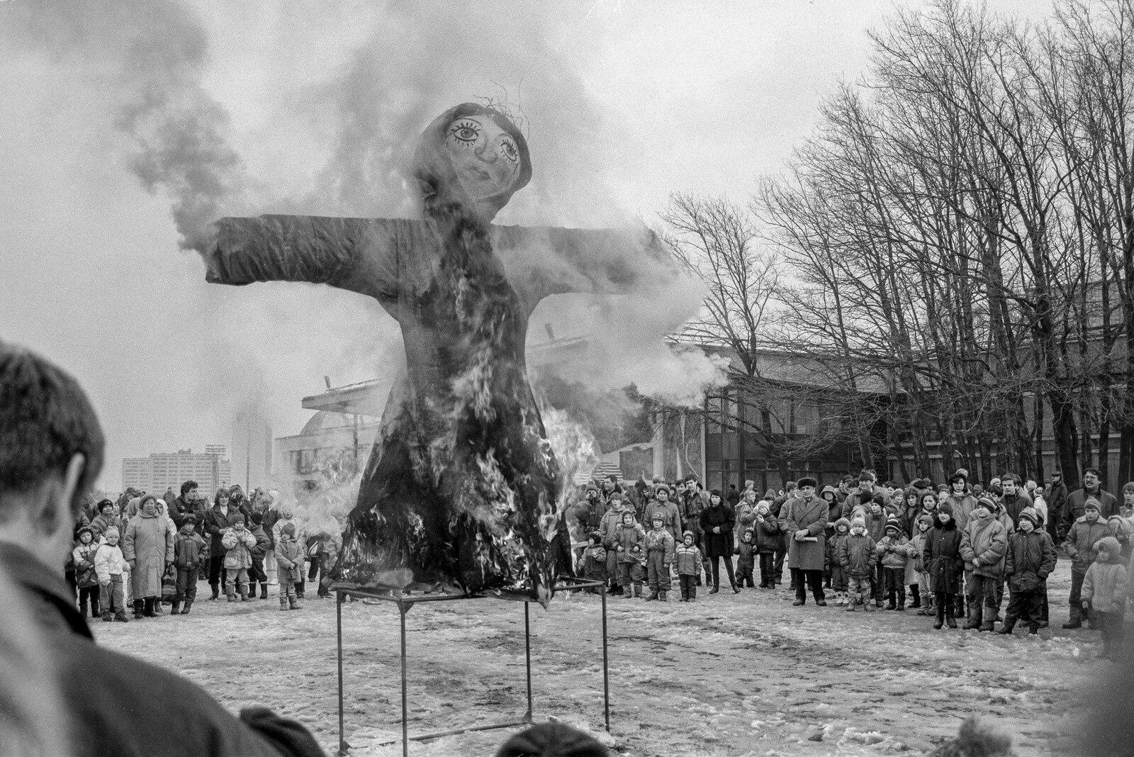 С традицией сжигания чучела ситуация аналогичная. Существует огромный пласт этнографических исследований, уверенно фиксирующий неоднородность обычаев по разным российским губерниям. Где-то чучело сжигается, где-то просто жгут костры.
